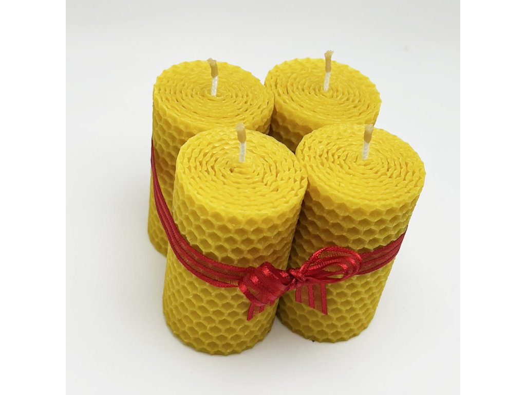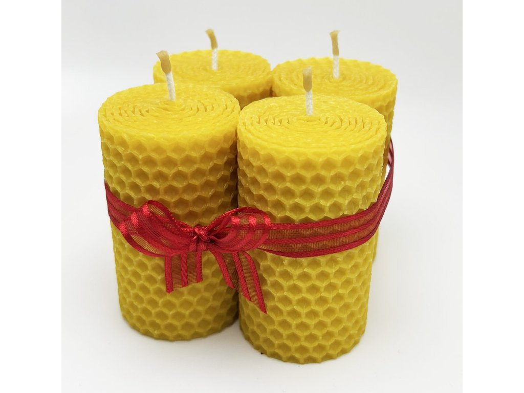Ručně vyrobená sada 4ks svíček z pravého včelího vosku. Převázaná mašlí. Válcový tvar.