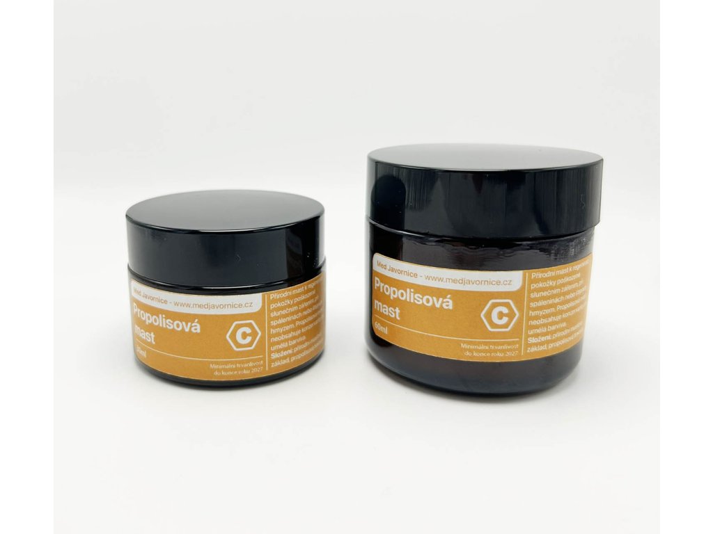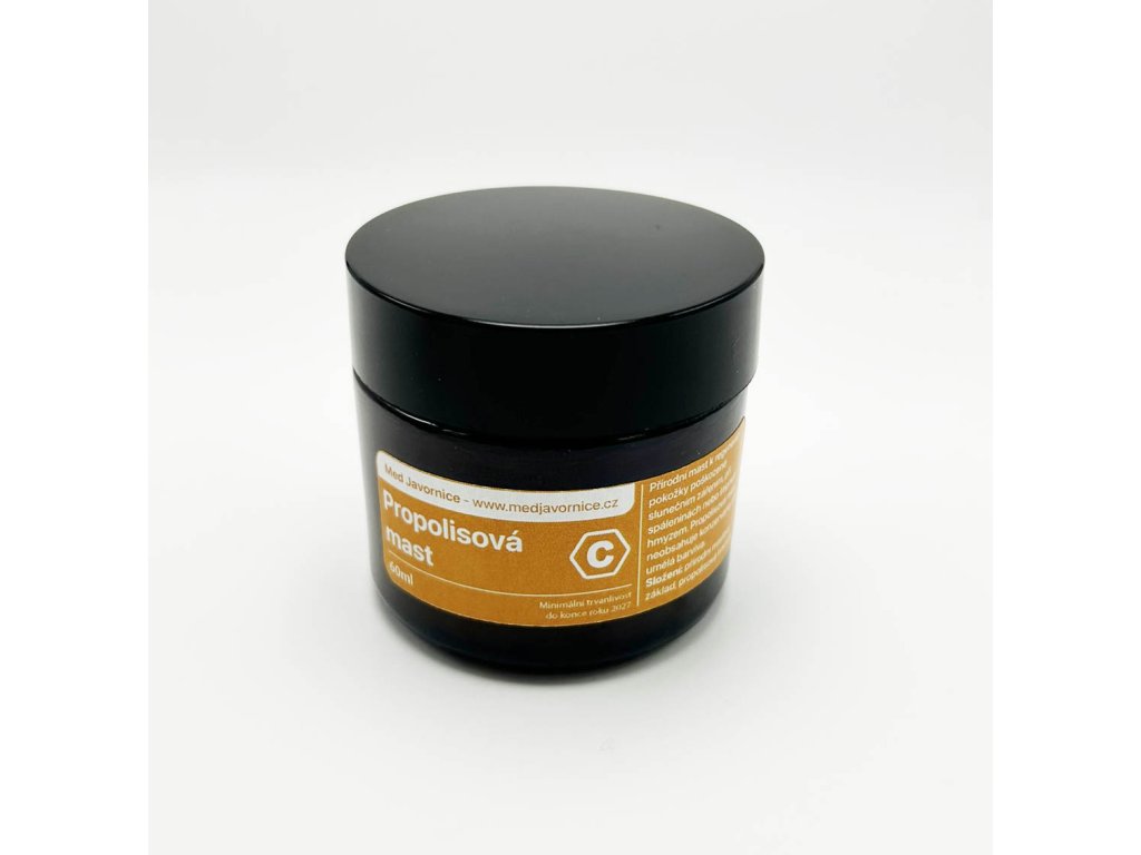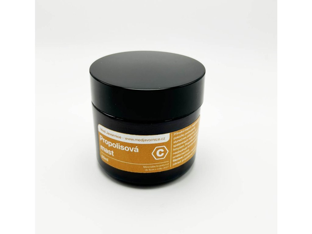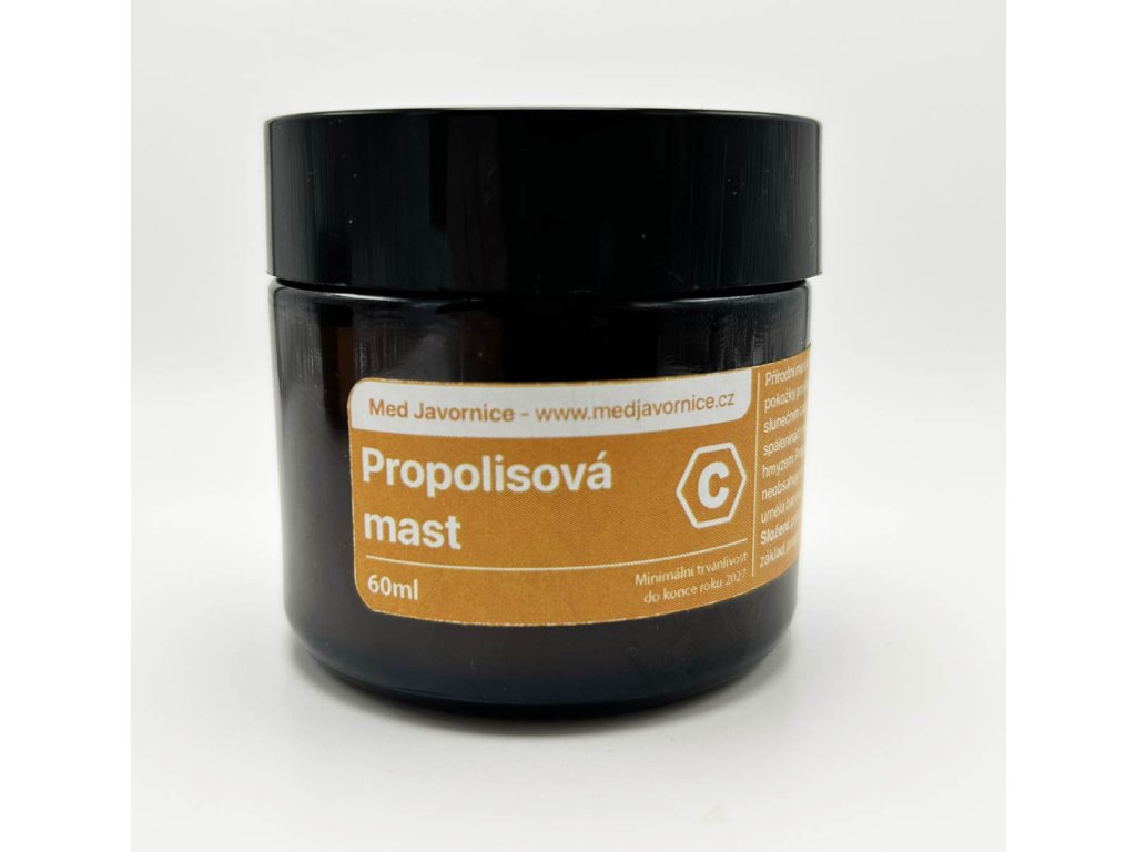 Přírodní propolisová mast. Obsah 60ml / 50g. Datum výroby 31. 1. 2026.