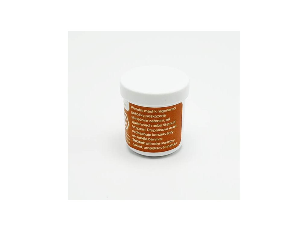Přírodní mast k regeneraci pokožky poškozené slunečním zářením, při spáleninách nebo štípnutí hmyzem. Možno použít i na rty v zimě při lyžování. Pro své hydratační účinky lze propolisovou mast úspěšně použít v péči o rozpraskané paty a ruce, velmi dobře změkčuje kůži. Propolisová mast neobsahuje konzervanty ani umělá barviva.
