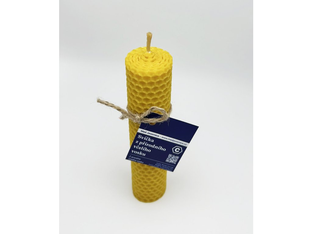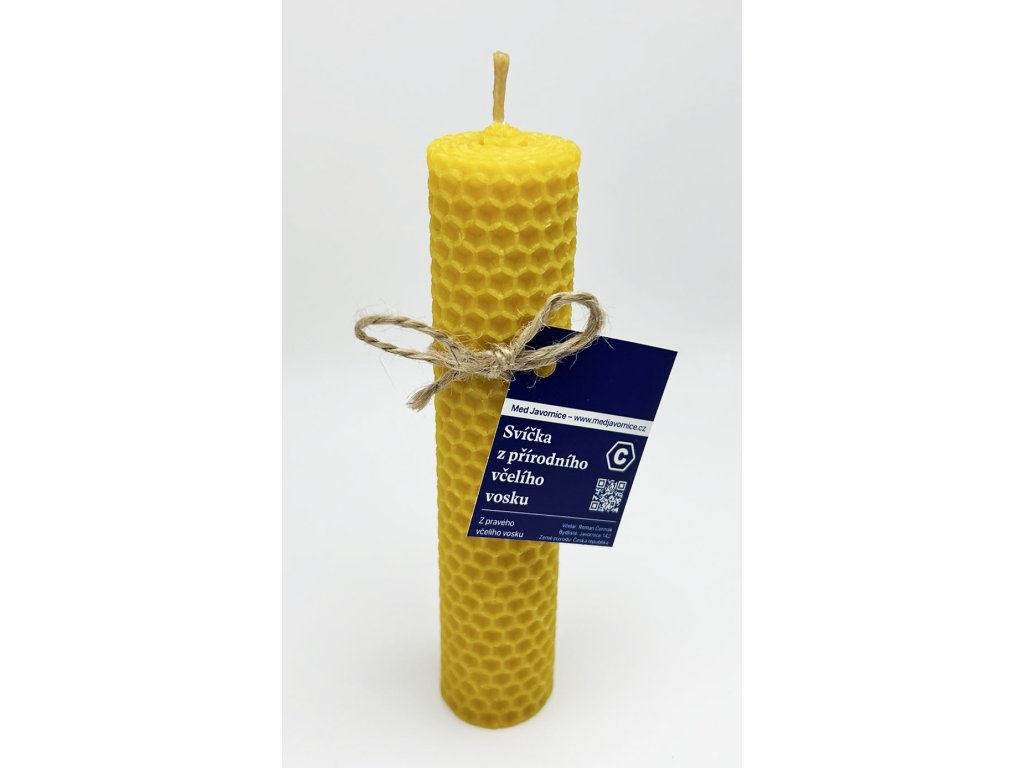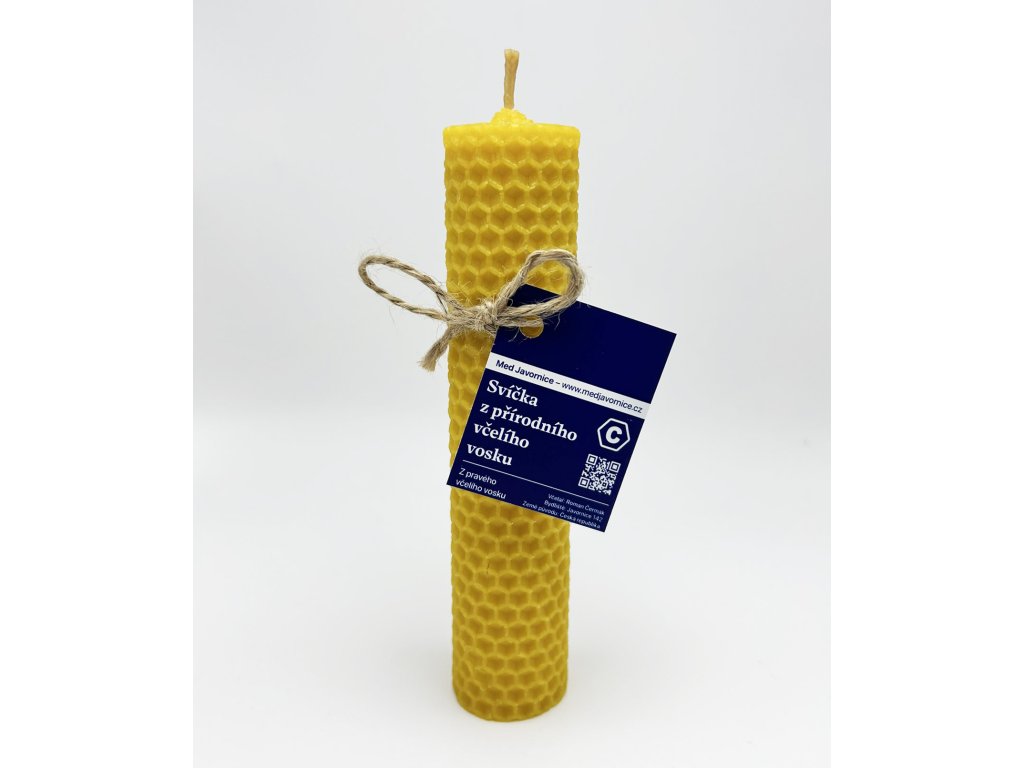 Tato svíčka byla vyrobena ručně z pravého včelího vosku. Je ze 100 % českého vosku. Tato svíčka má po celé výšce stejný průměr. Včelí svíčky mají oproti běžným, zejména parafínovým svíčkám mnoho výhod – jsou přírodní, mají příjemnou medovou vůni, stabilně hoří, neprskají, pohlcují nepříjemné pachy včetně cigaretového kouře, ionizují ovzduší a blahodárně působí na naše smysly.