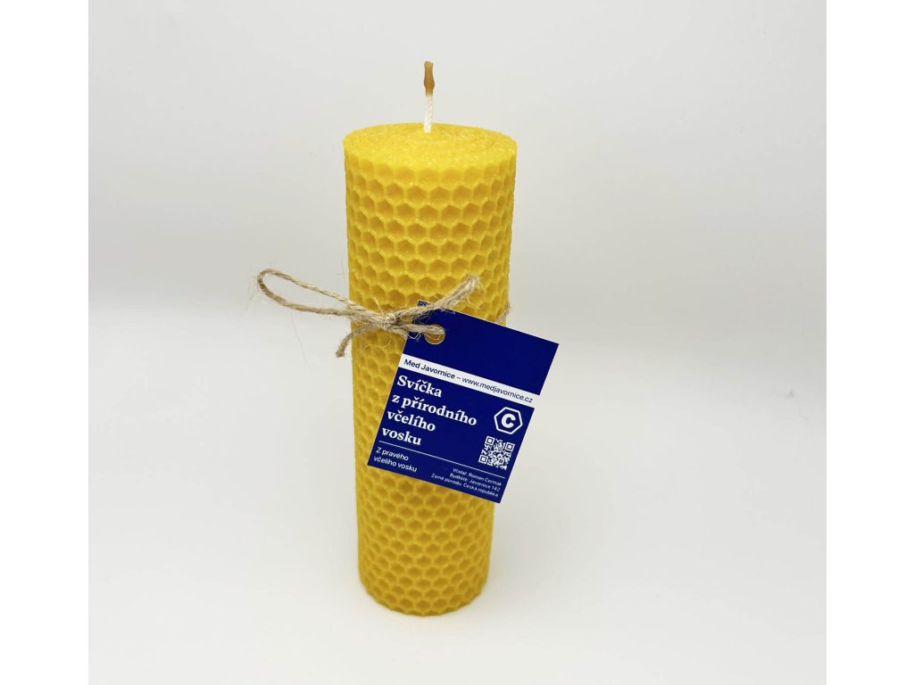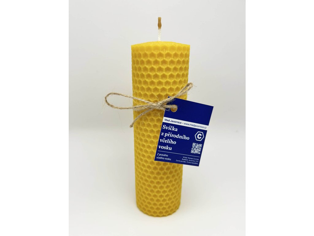 Tato svíčka byla vyrobena ručně z pravého včelího vosku. Je ze 100 % českého vosku. Tato svíčka má po celé výšce stejný průměr. Včelí svíčky mají oproti běžným, zejména parafínovým svíčkám mnoho výhod – jsou přírodní, mají příjemnou medovou vůni, stabilně hoří, neprskají, pohlcují nepříjemné pachy včetně cigaretového kouře, ionizují ovzduší a blahodárně působí na naše smysly.